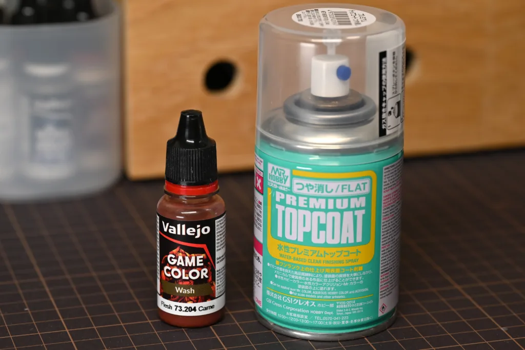 トップコートはつや消し(FLAT)を使用し、ゲームウォッシュのフレッシュ(73204)でウォッシュ。