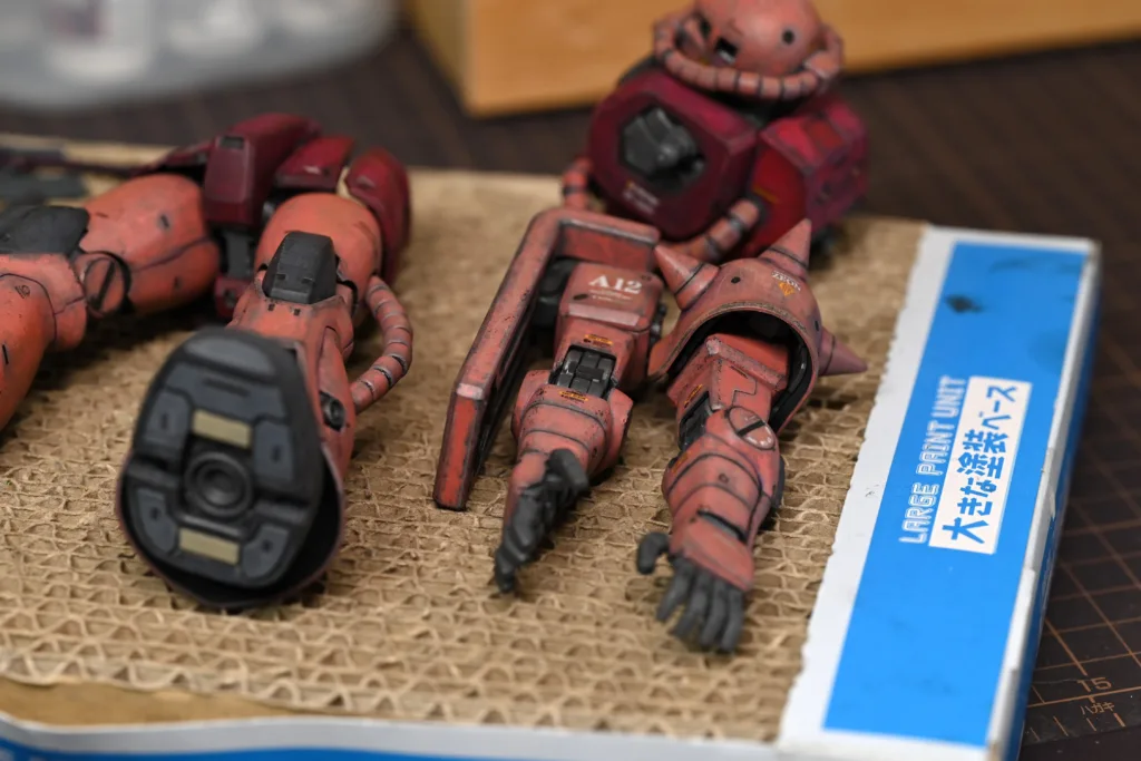 宇宙可動がメインなシャア様の機体ですし、綺麗に整備されてるんではないかなと妄想し、汚しすぎずを意識。