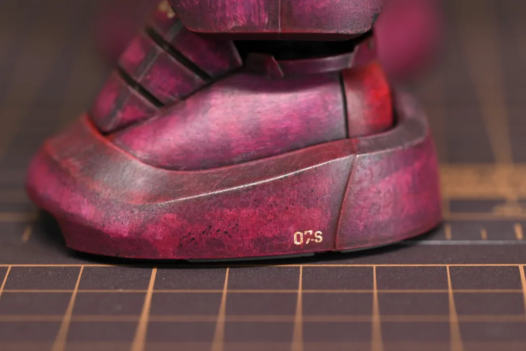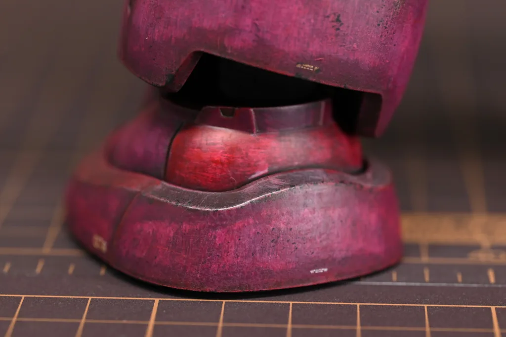 特に脚部などのレッドパープル部分は、下地でつけた陰影がそのまま表面に出てます。ちょっとうるさいかなとも思いましたが、組んでみたら意外と馴染んでくれたような気がします。