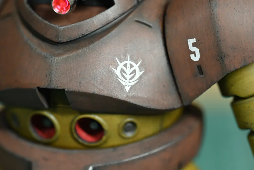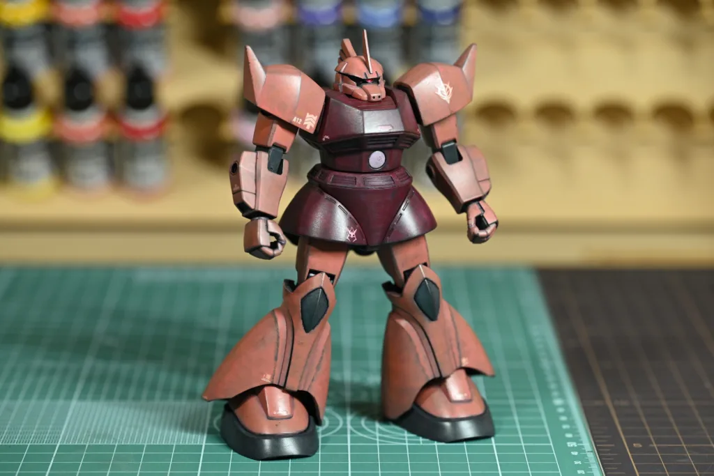 先ほどのゲルググに比べ、肩や胸部に乗る光がぼんやりし、表面もさらさらとした質感