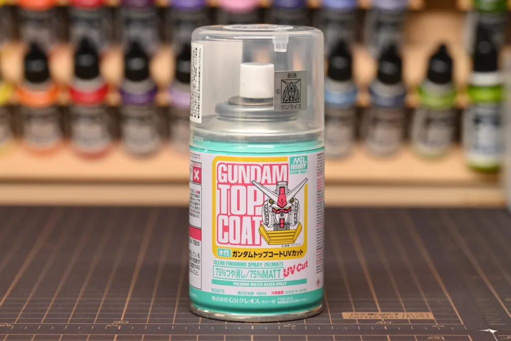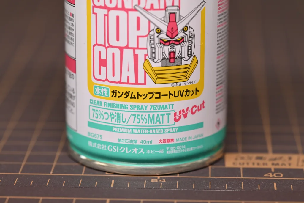 正式名称は「水性ガンダムトップコート UVカット 75%つや消しスプレー」。執筆時の2025年12月に新発売となった、最新のトップコートです。