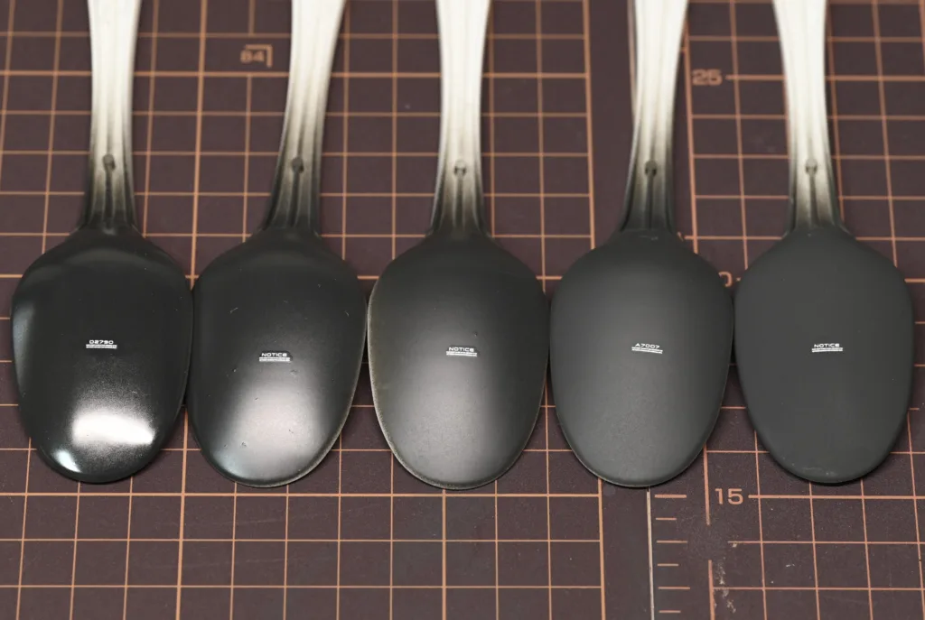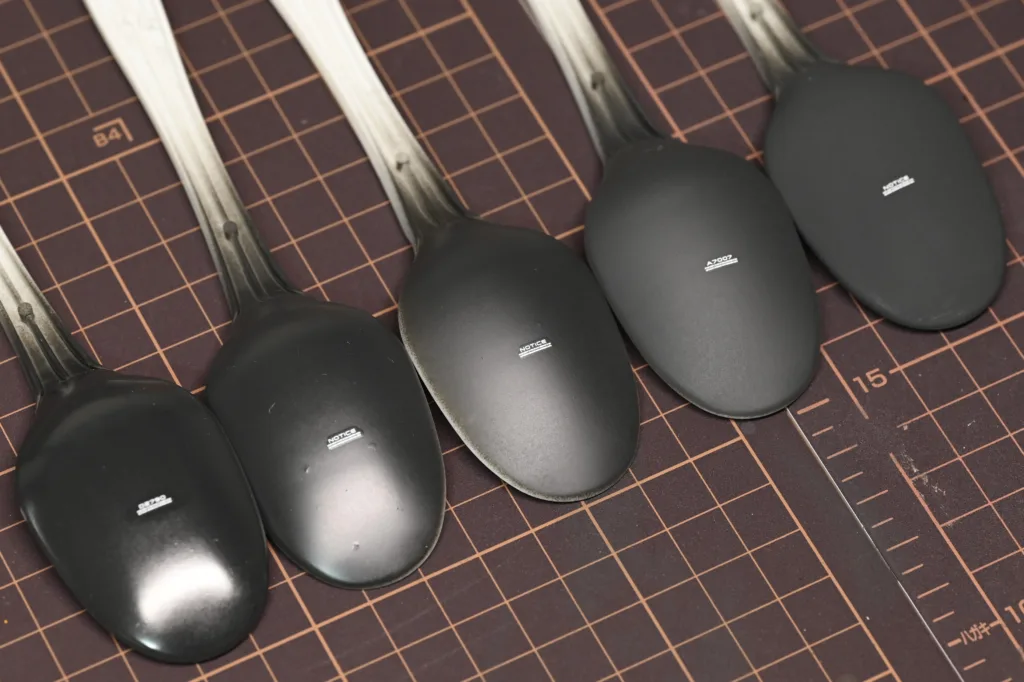 ↑こちらは上から光沢・半光沢・75%つや消し・つや消し(FLAT)・つや消し(MATT)の順。