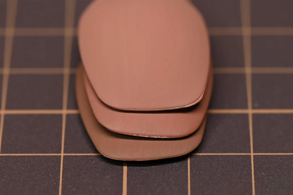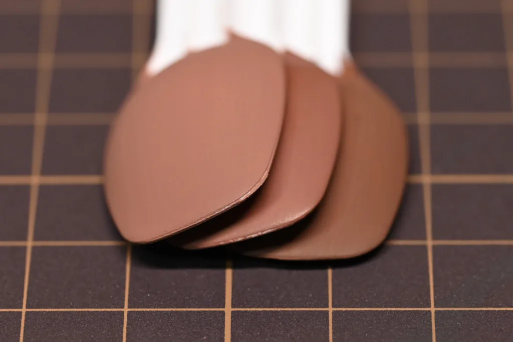 左から、また重ねた画像は上から紹介順で、サドルブラウン(70940)・マホガニーブラウン(70846)・フラットブラウン(70984)となっています。