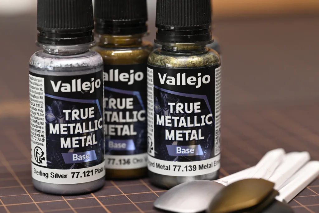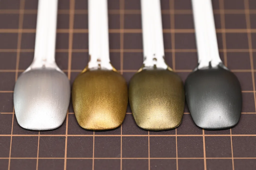 ゴールド・シルバー系はモデルカラー・ゲームカラーでもありますが、やはり粒子の細かさが特徴でまた違った印象になりますね。